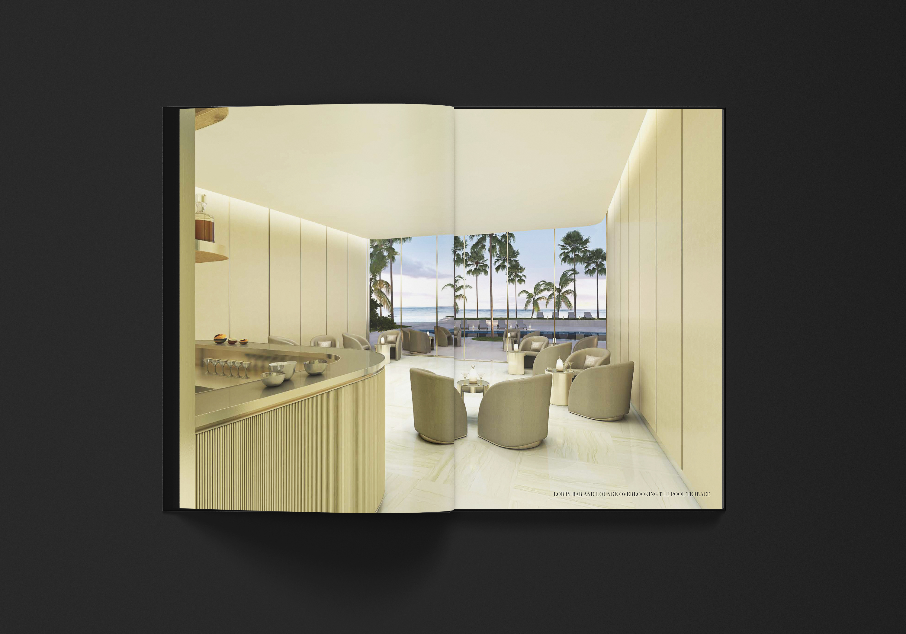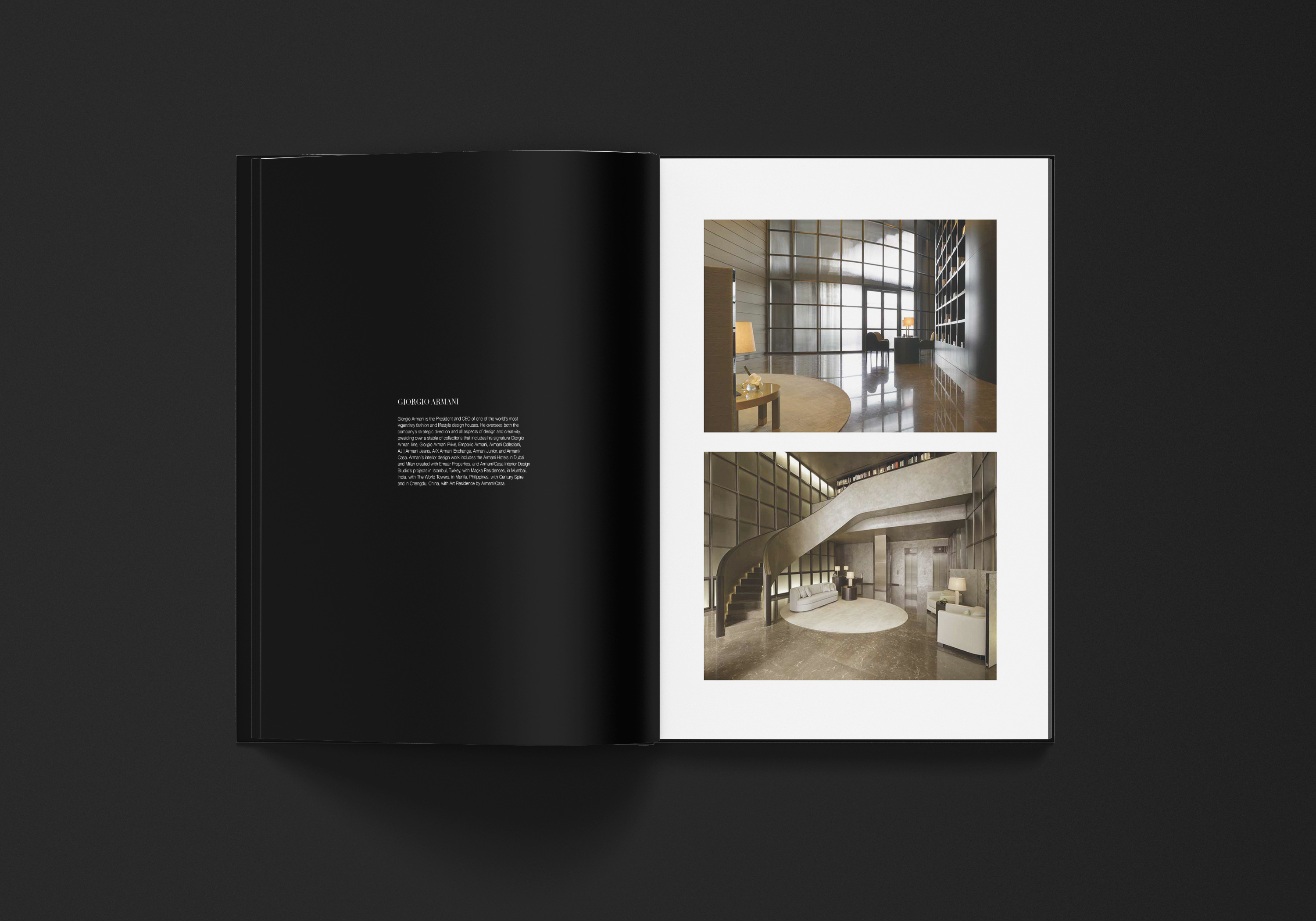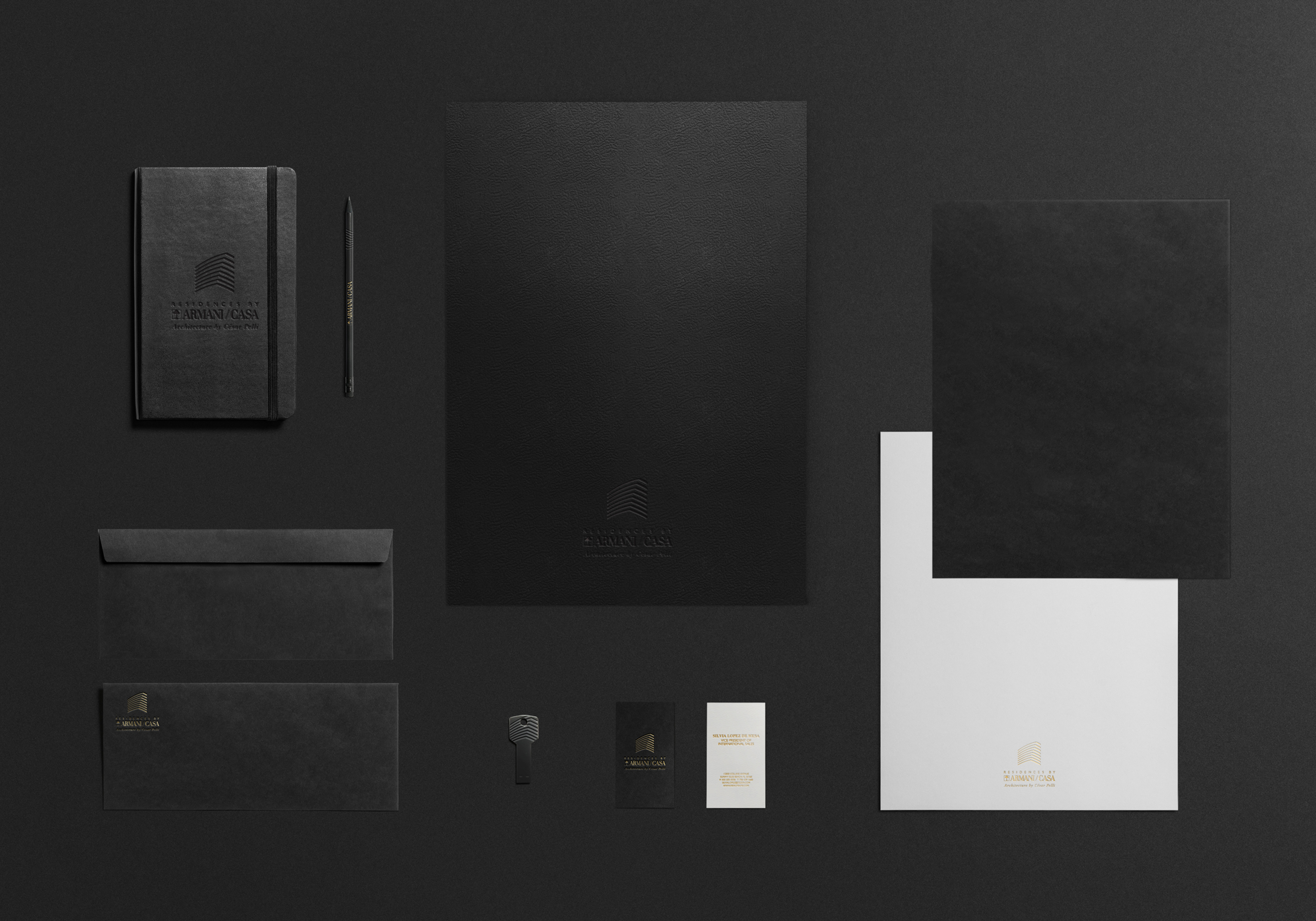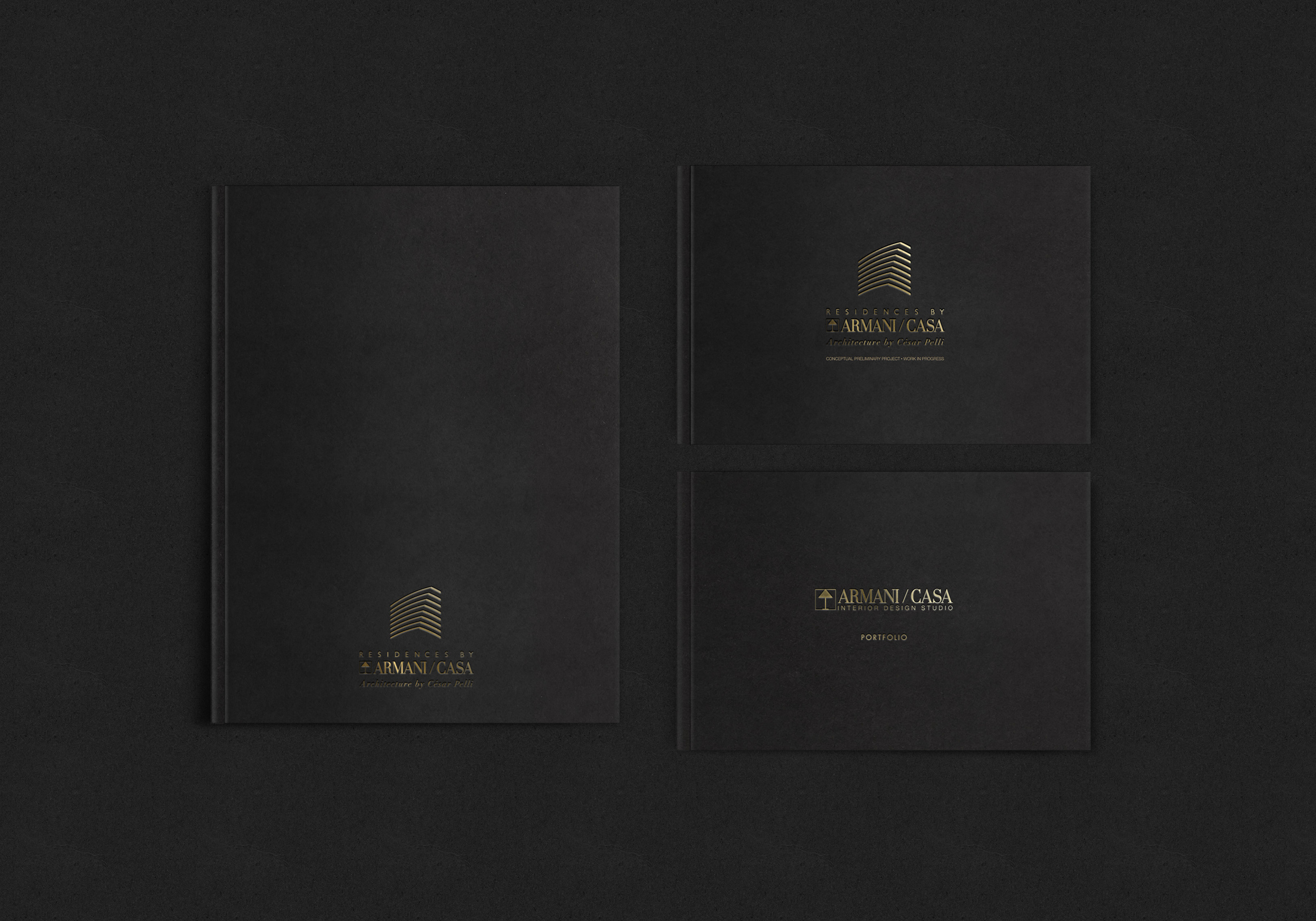 Visual Identity for Residences by Armani Casa. We sought to capture the opulence of of Giorgio Armani’s reknowned furniture brand and Cesar Pelli’s signature architectural style by incorporating minimal black pieces adorned with a luxurious gold finish.